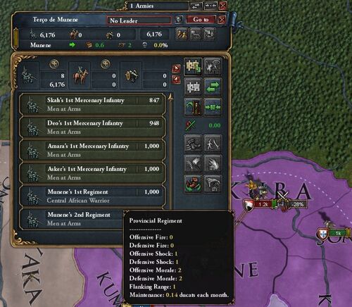 隣国コンゴ Kongo が激おこで軍隊通行権 military access がもらえず、陸軍を外からは送り込めない中央アフリカ内陸の属国クバ Kuba 内に居座る叛乱軍を鎮圧するために、属国領内で歩兵を徴兵したところ、中央アフリカの戦士 Central African Warrior という…