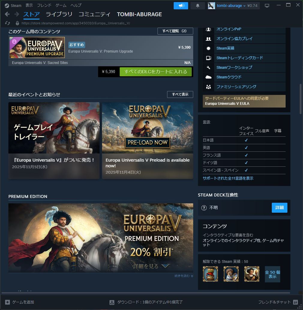 世界中の歴史シミュレーションファン待望の「Europa Universalis V(EU5)」が、日本語版も含めて、全世界で同時リリース。